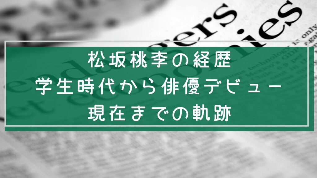 「松坂桃李の経歴」完全ガイド|学生時代から俳優デビュー、現在までの軌跡
