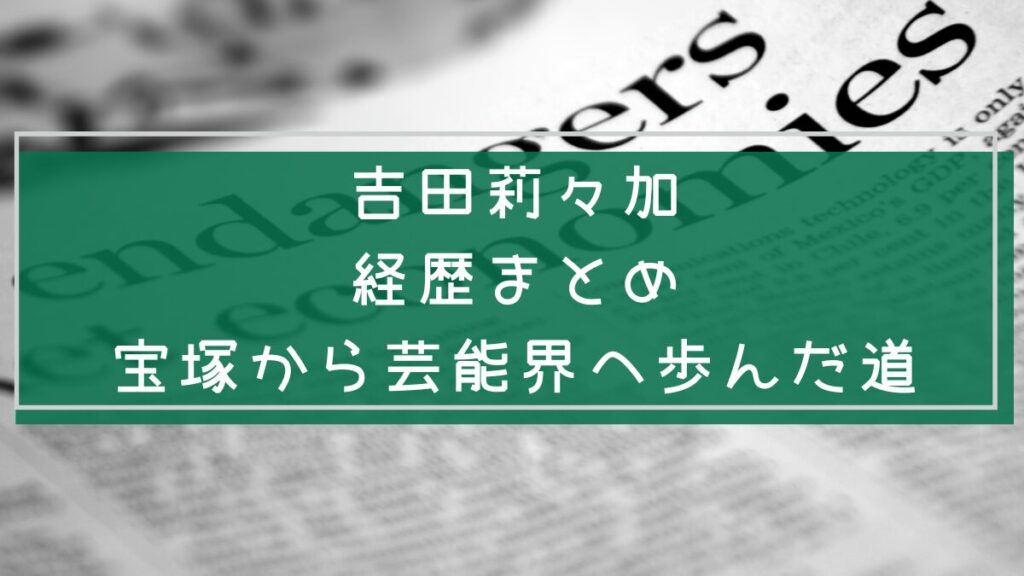 吉田莉々加さんの経歴をまとめました。宝塚で「礼哉りおん」として活躍し、退団後は女優・モデルへ転身。学生時代から現在までの歩みやSNSでの素顔、今後の展望までわかりやすくご紹介します。