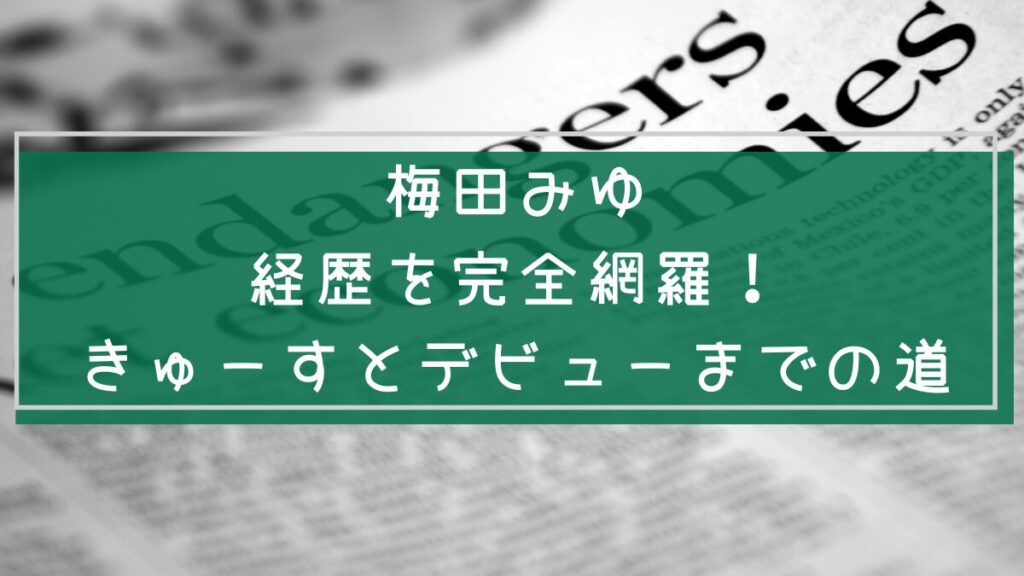 熊本出身のアイドル・梅田みゆさんの経歴を時系列で紹介。 高校時代からの挑戦や「今日好き」出演秘話、CUTIE STREETでの活躍、そしてモデル活動までを詳しく解説します。 彼女の努力と素顔、その魅力がまるごとわかります。 -